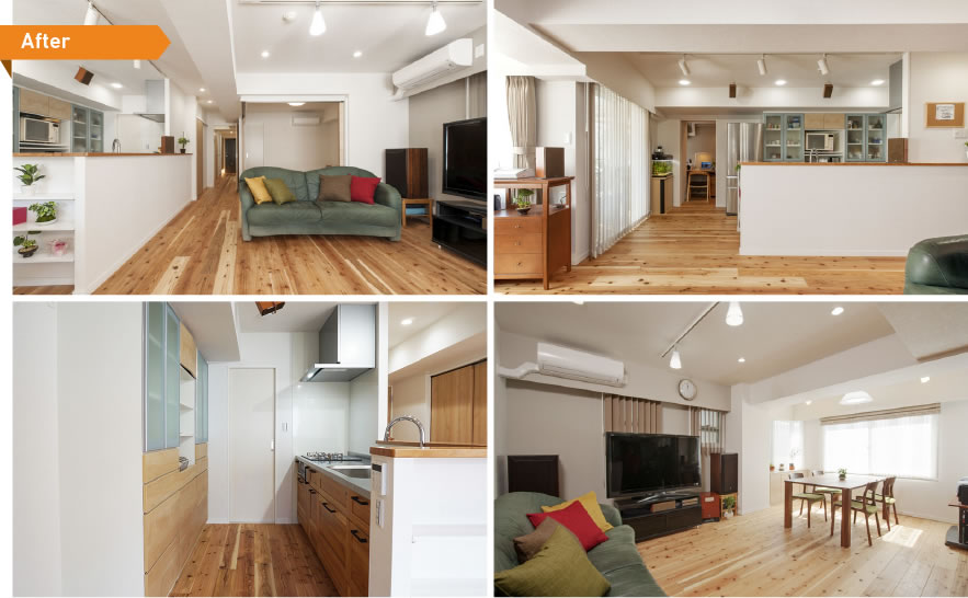 リノベーションが終わって新しい環境になってからしばらくして、今は独立した息子が帰ってきてこう言ったんです「空気がきれいだね、今までと全然違う」って。息子は子どもの頃気管支ぜんそくを患っていたこともあって室内の空気には敏感なんです。住まい全体をリノベーションして大正解でした。また杉の無垢材のほのかな香りも生活を心地よくしてくれています。杉の香りにはリラックス効果もあると聞きました。息子が独立し、夫婦二人の暮らしを満喫できる住まいを楽しんでいます。CLOSE